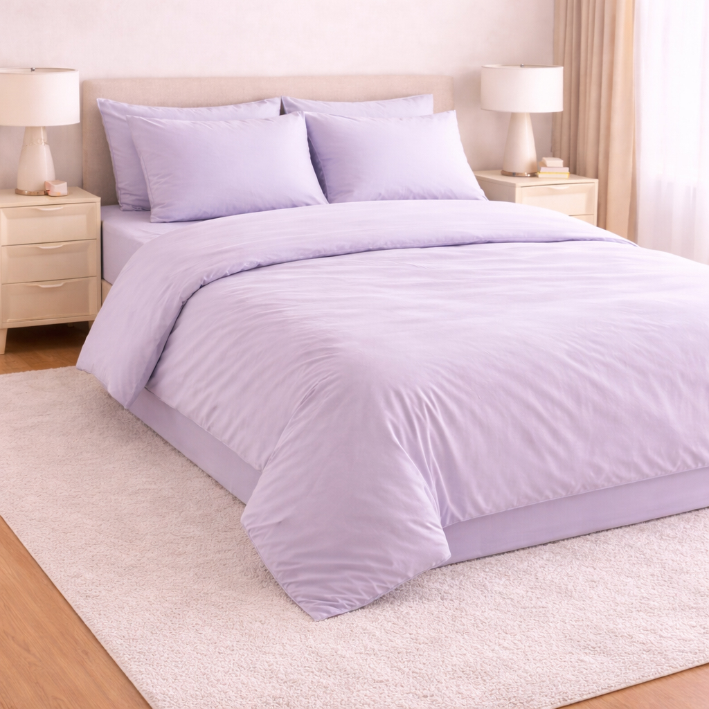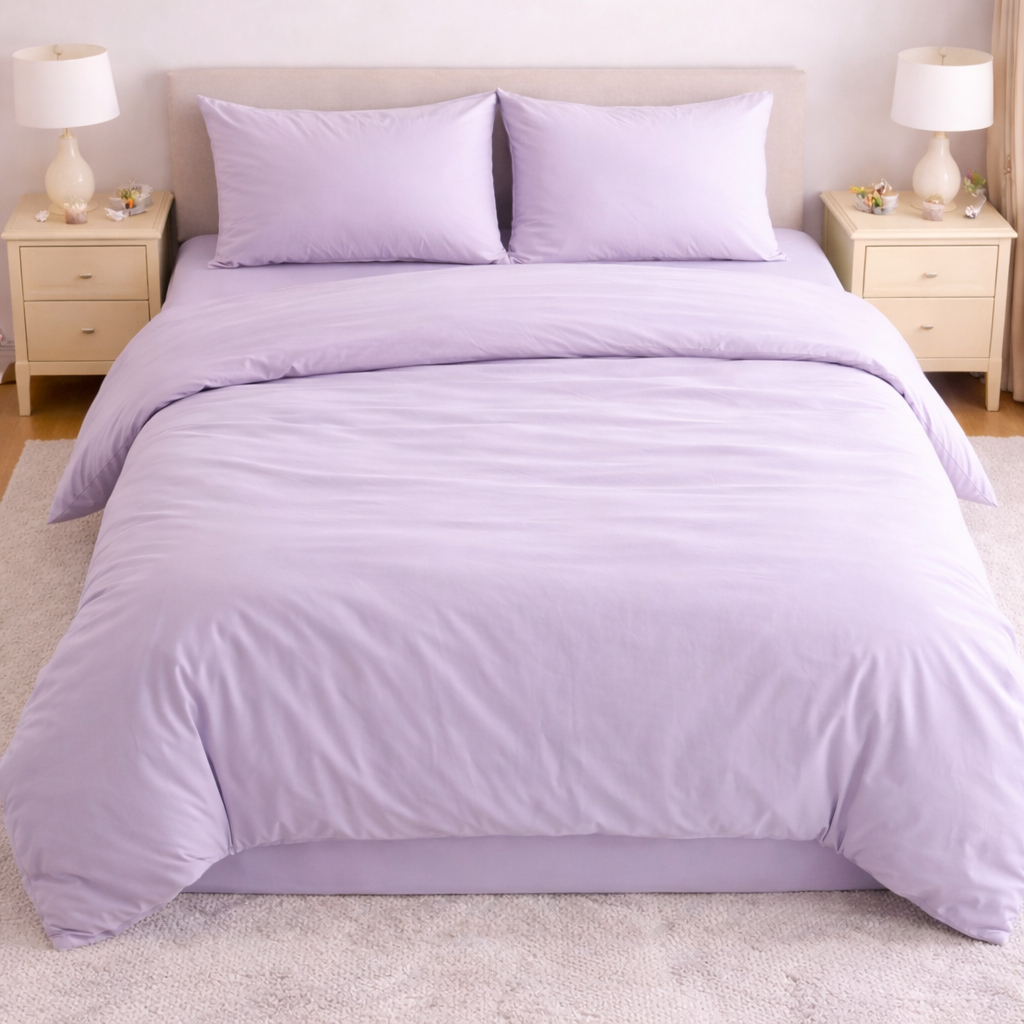 Set Lenjerie de Pat din Microfibră Satinată – culoare lila Fină, Elegantă și Ușor de Întreținut