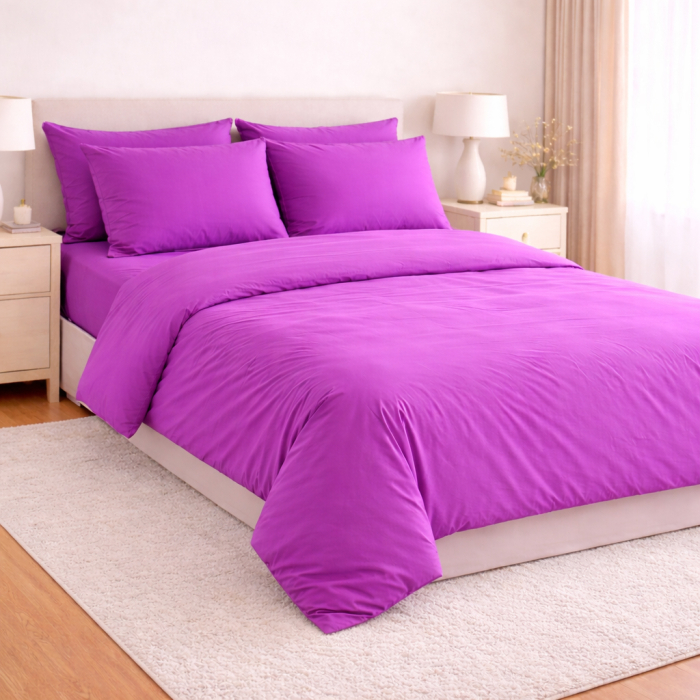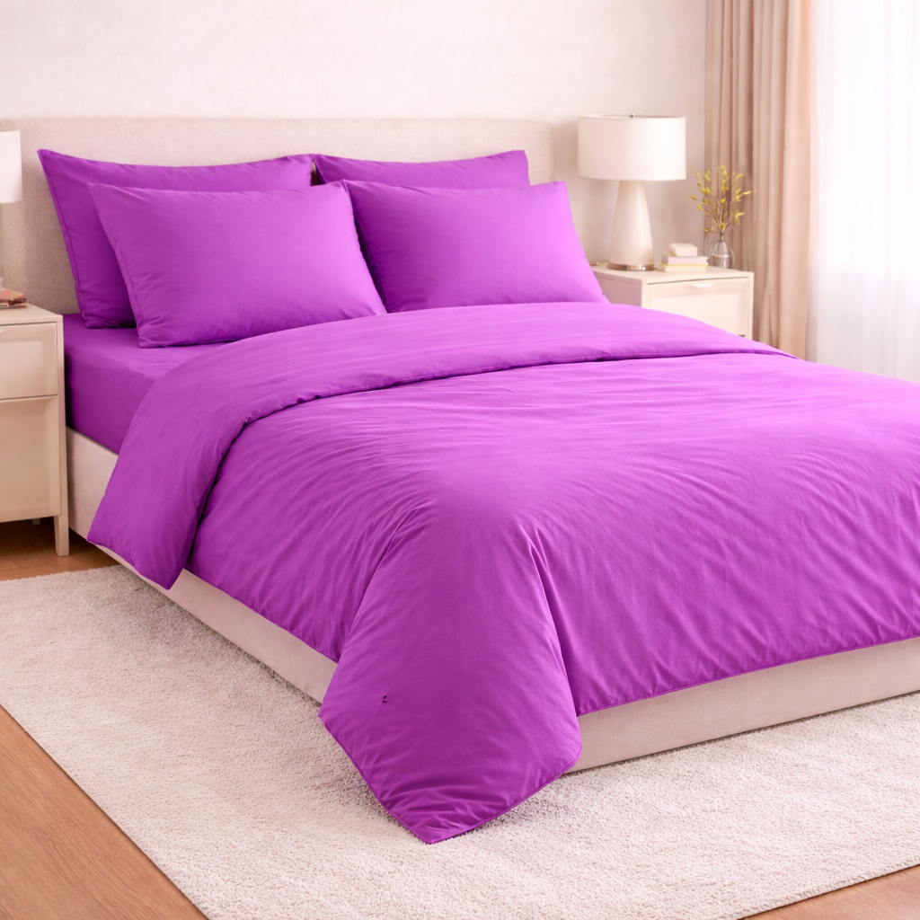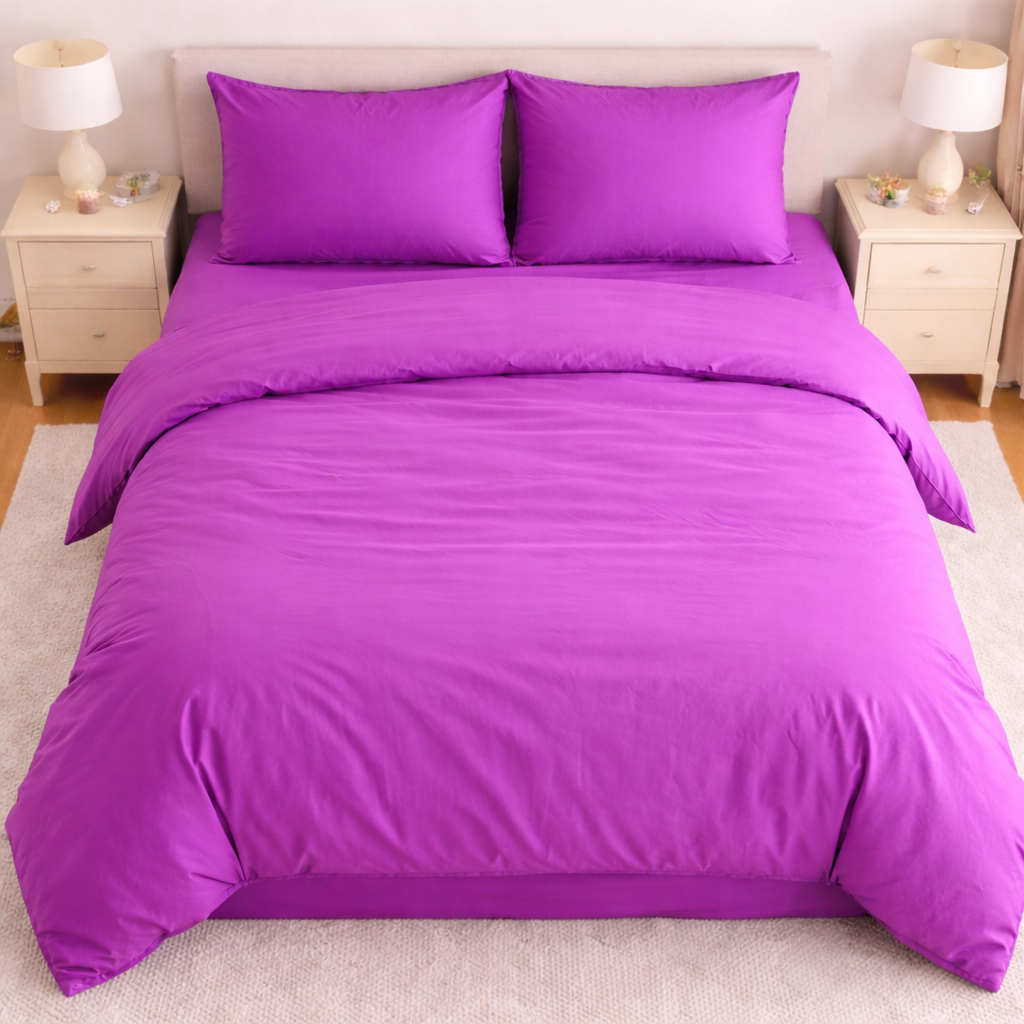 Set Lenjerie de Pat din Microfibră Satinată –culoare mov- Fină, Elegantă și Ușor de Întreținut