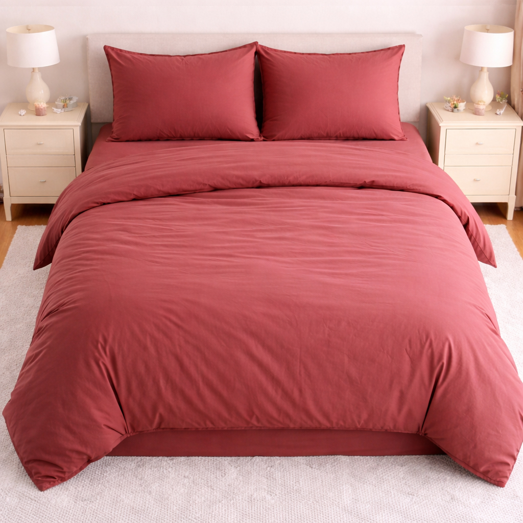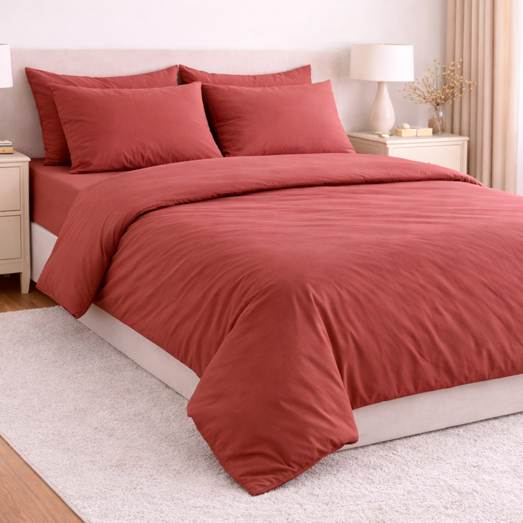 Set Lenjerie de Pat din Microfibră Satinată –culoare teracota - Fină, Elegantă și Ușor de Întreținut